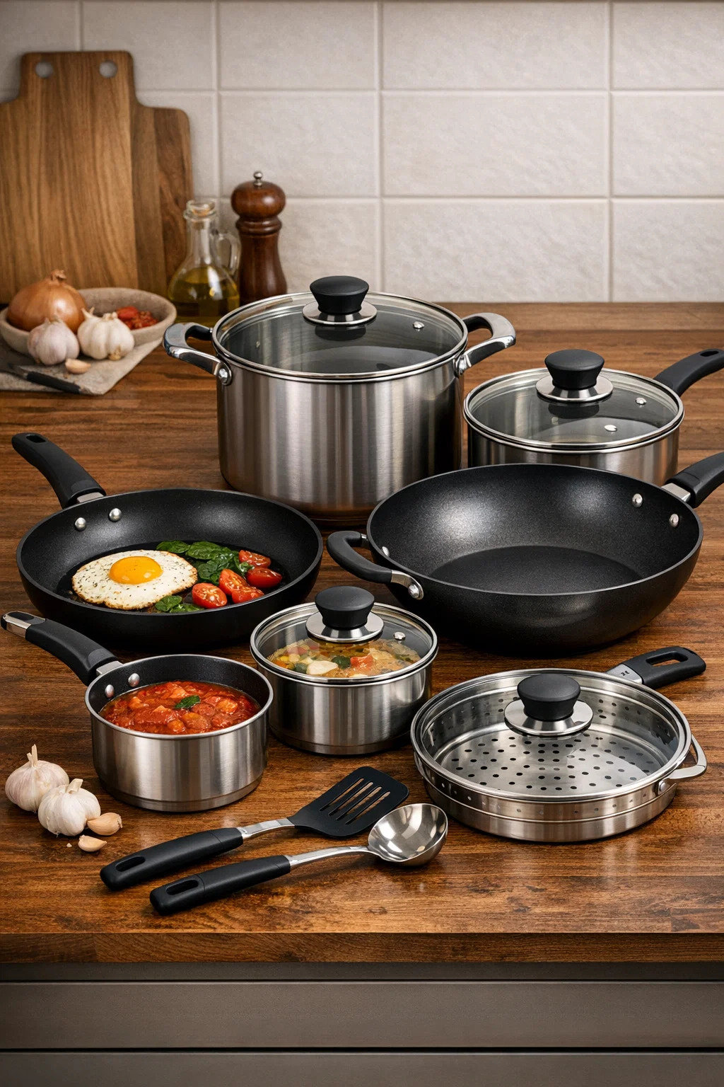 Eine komplette Satz Küchenkochgeschirr ist wie ein multifunktionaler Werkzeugkasten, der verschiedene „Profiwerkzeuge“ für den Umgang mit verschiedenen Zutaten und Kochmethoden enthält. Mit diesem Komplettset meistern Sie problemlos alles, vom einfachen Frühstück mit Spiegeleiern bis hin zum üppigen Familienessen.