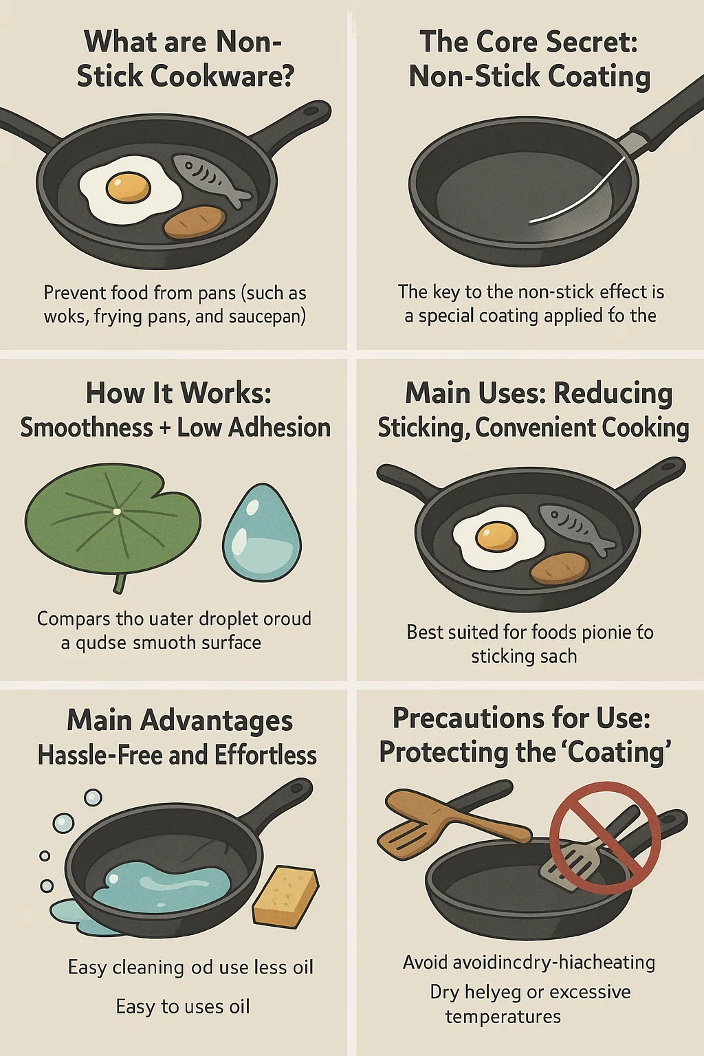 Einfach ausgedrückt handelt es sich dabei um Töpfe und Pfannen (z. B. Woks, Bratpfannen und Kochtöpfe), deren Innenfläche speziell behandelt wurde, um zu verhindern, dass Speisen beim Kochen am Boden kleben bleiben. Wenn Sie unter Rühren braten, Eier braten oder Fisch braten, bleibt das Essen nicht so leicht am Boden der Pfanne kleben.