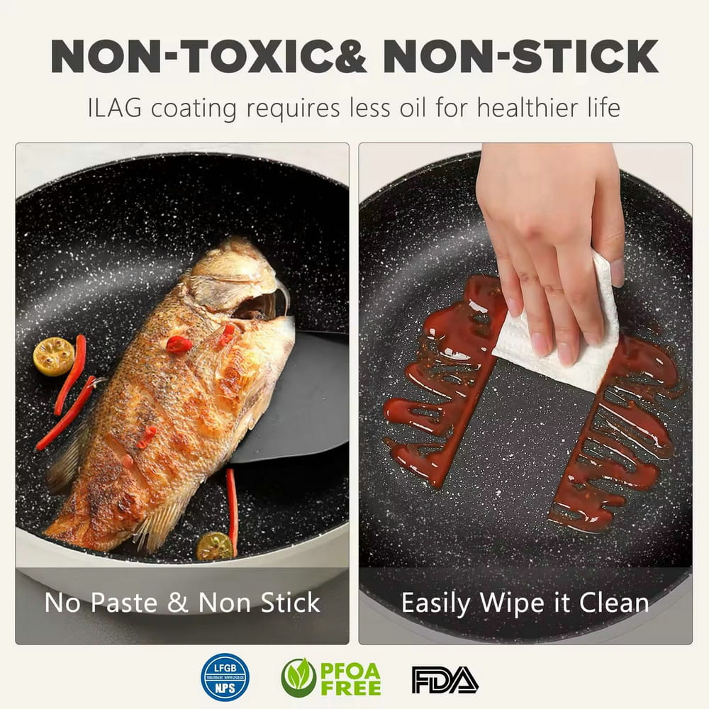 Heim / Produkt / Bratpfanne / Der mehrfarbige Küchenchef verwendet antihaftbeschichtete Bratpfannen, Suppentöpfe mit Glasdeckel