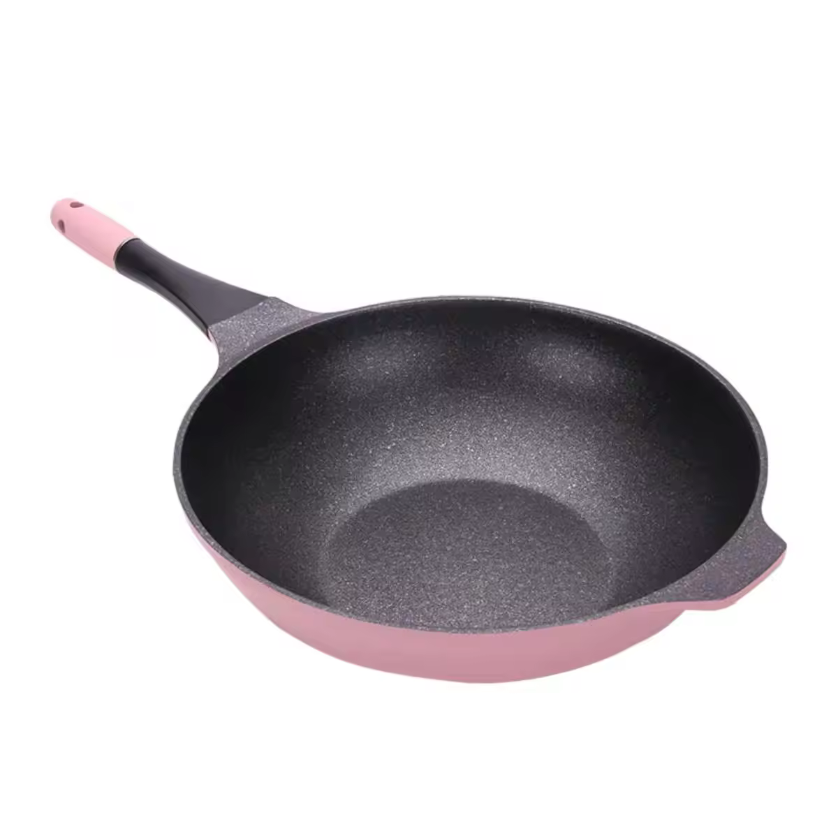 Wok-Pfanne aus Aluminiumdruckguss mit Induktionsboden, antihaftbeschichteter Keramik, tiefes Arbeiten mit Deckel Wholesale