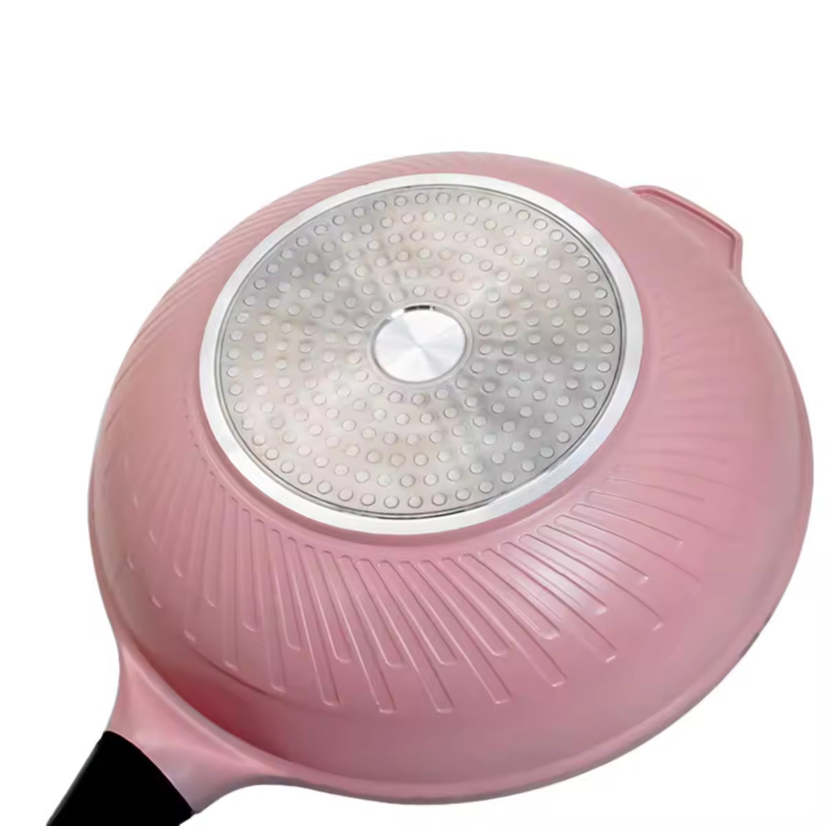 Heim / Produkt / Wok / Wok-Pfanne aus Aluminiumdruckguss mit Induktionsboden, antihaftbeschichteter Keramik, tiefes Arbeiten mit Deckel